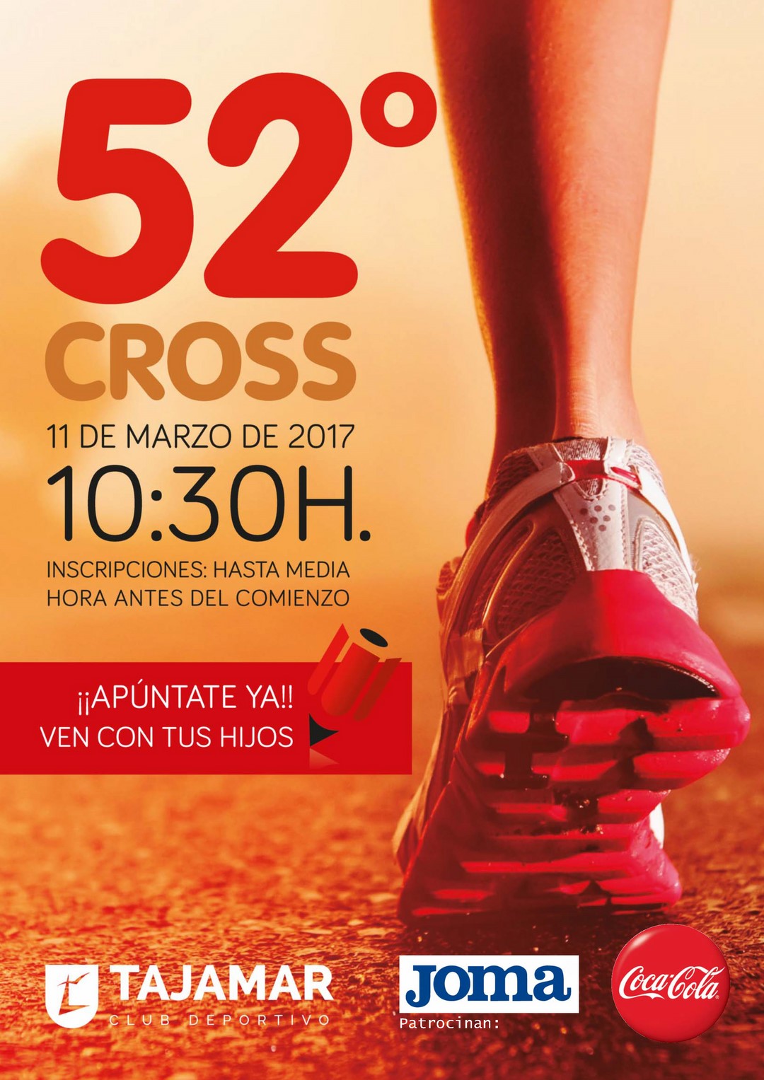 El cross de Tajamar se celebrará el 11 de marzo a las 10.30 h. Cientos de familias disfrutarán con sus hijos de una mañana deportiva. Los padres verán cómo sus hijos e hijas se emplean a fondo para terminar su carrera. Esta 52º edición del cross, que está patrocinado por Coca Cola y Joma, cuenta también con la promoción que han hecho los alumnos del taller de teatro a través de un video que puedes ver a continuación. ¡Os esperamos!