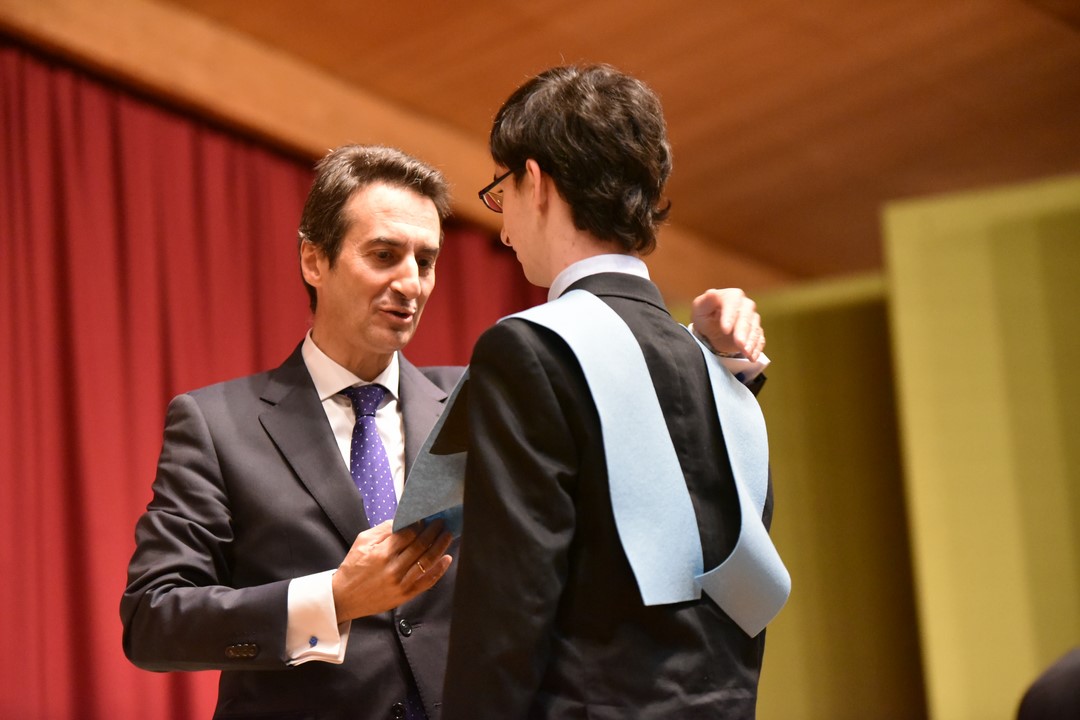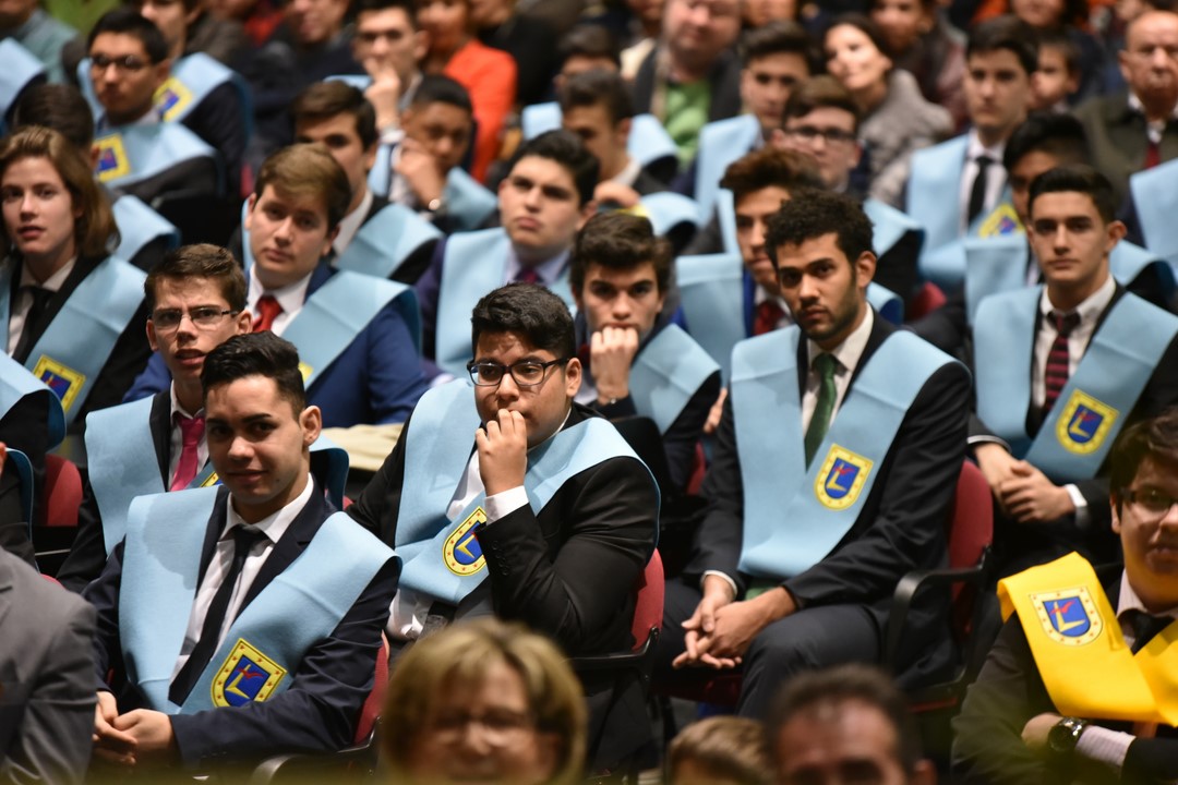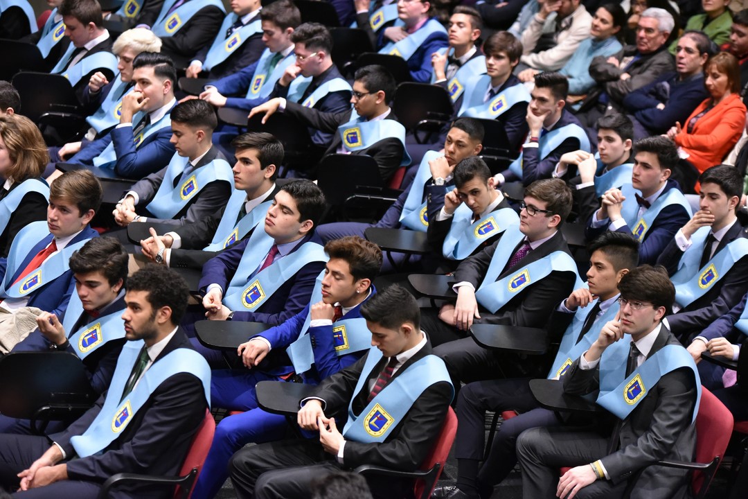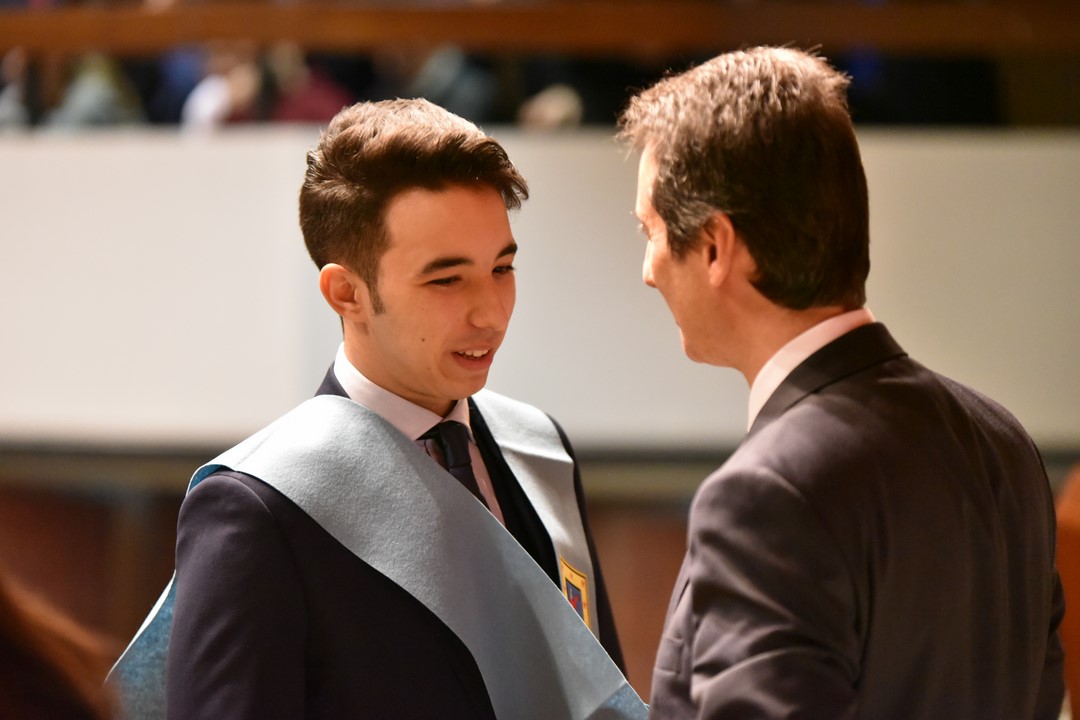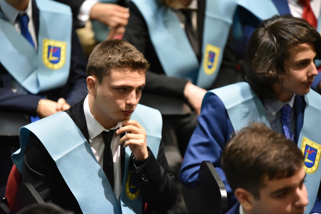 Cerca de ciento cincuenta alumnos de 2º Bachillerato y Ciclos Formativos de Grado Medio se han graduado en Tajamar en un solemne acto que presidió Francisco Javier Abajo Dávila, director general de energía, industria y minas de la Comunidad de Madrid, que es, además, antiguo alumno COU´82. En el acto se impuso la beca del centro a estos alumnos, que terminan este año sus estudios. Para muchos de ellos ha sido el colofón a una carrera que comenzaron hace quince años, cuando entraron en el Infantil del colegio.